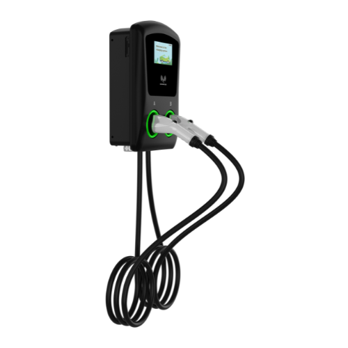 Equipped with two Type 1 (J1772) connectors, this charger allows either a single EV to be charged at full power (19.2 kW) or two EVs to be charged simultaneously at reduced power levels.Dual charging heads are intelligently controlled by a Smart Load Mgmt. system that adjusts and optimizes power distribution during operation.